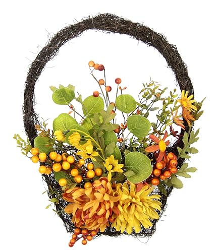Höstkrans av rotting för ytterdörren med krysantemum bär höstlöv dekorationer för höst dörrkrans dörrdekoration höstdekoration för halloween skördefest skörd hem utomhus och inomhus