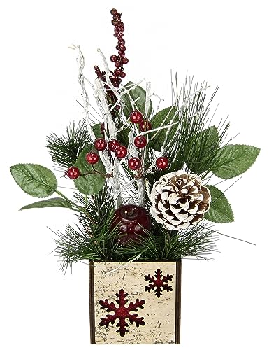Flair Flower arrangemang av gran bär/kottar i kruka jularrangemang julblommor konstgjord blomma vinterblomma växt grenar arrangemang juldekoration bordsdekoration jul gran