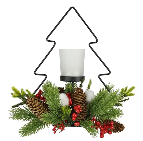 Dekorerad värmeljushållare av metall med värmeljusglas, kottar, bär, grangrenar, stämningslju, ljushållare, juldekoration dekoration bordsdekoration, dekorativa objekt, glasornament 3D-bild
