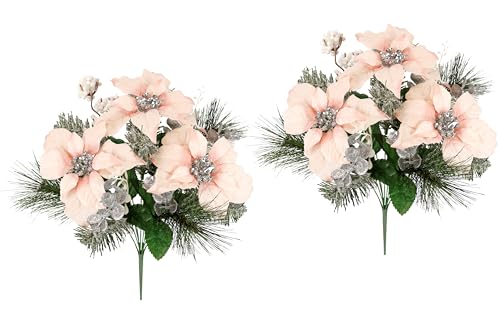 Konstgjorda blommor, bukett, julstjärna, eukalyptus, bär, grangrenar, set om 2, 45 cm, Poinsettia, adventsstjärna, konstgjord julbukett, X'Mas juldekoration blommor, blomdekoration, dekorativ blomma
