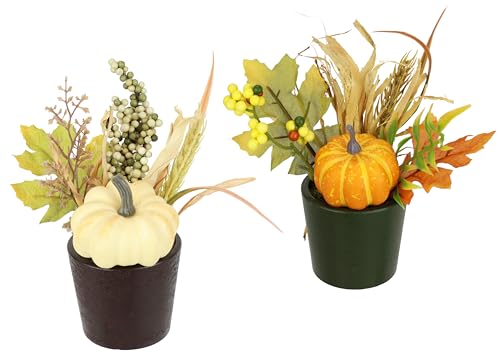 Arrangemang med konstgjord pumpa bär, höstlöv i kruka, set om 2, 18 cm konstgjorda blommor, dekorativ blomma, höstdekoration, höstblomma, arrangemang, bordsdekoration, höstarrangemang,
