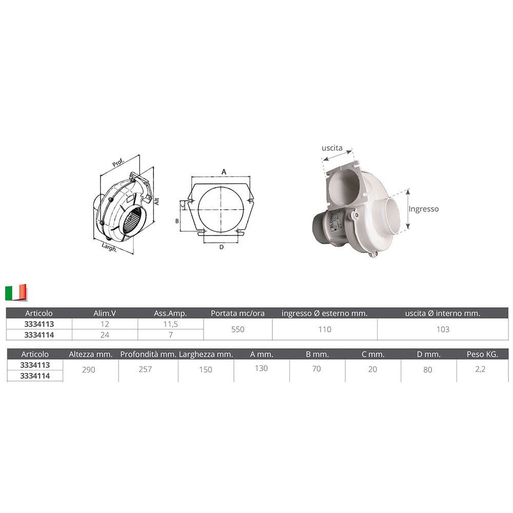 Matromarine 550 M³/h Fläkt 11.5a 12v