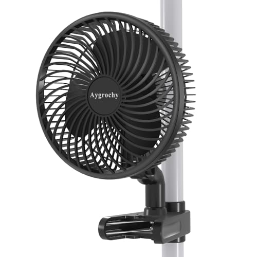 Aygrochy 10 W växtfläkt med klämma, EC-motorer, växtfläkt med 10 hastigheter, IP-44 skyddsklass växer clip-on-fläkt för tält, ej oscillerande (manuell oscillerare)