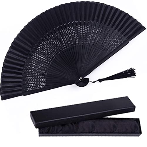 Silke hopfällbar fläkt, bambuträ handfläkt japansk vintage retro stil handgjord handhållen fläkt med tygärm och tofsar för heminredning fest fars dag bröllop dans påsk sommargåva