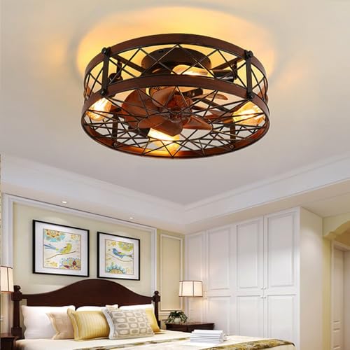 JOJOM Retro takfläkt med belysning och fjärrkontroll Industriell fläkt taklampa Vintage järnbur fläkt taklampa för sovrum vardagsrum kök, 4xE26 glödlampa bas (Size : A)