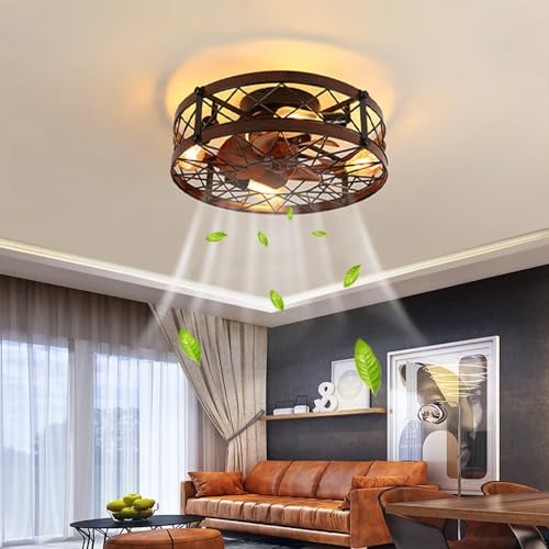 Takfläkt Med Belysning Och Fjärrkontroll Fläktupphängning Vintage Industrial Iron Cage Vardagsrum E27 Glödlampa Retro Fläkt Ljuskrona Matsal Sovrum 6 Vindhastigheter Fläkt Hängande 3000-6500K (Size :