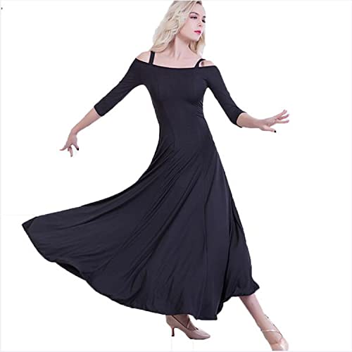 Kvinnors Ballroom Dance Klänningar Smooth Milk Silk Modern Waltz Flamenco Dance Dress Classic Utsökt Tango Foxtrot Dancewear Kostym,Black,3XL