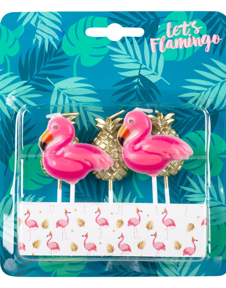 5 stk Flamingo och Ananas Tårtljus - Flamingo Gold