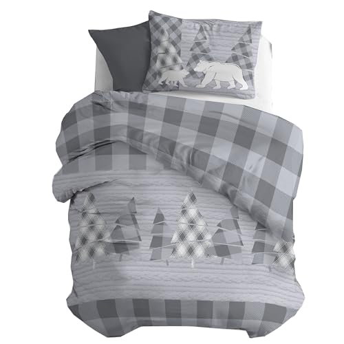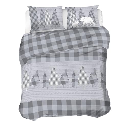 PENSIERI DELICATI Parure Påslakan Singel Flanell 100% Bomull, Väska 155X200 Cm Och Örngott 52X82CM, Tillverkad i Italien, 40° Maskintvättbart Påslakan Kanada-Mönstrad Grå