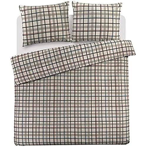 PENSIERI DELICATI Parure Påslakan Singel Flanell 100% Bomull, Väska 155X200 Cm Och Örngott 52X82CM, Tillverkad i Italien, 40° Maskintvättbart Påslakan Kanada-Mönstrad Beige