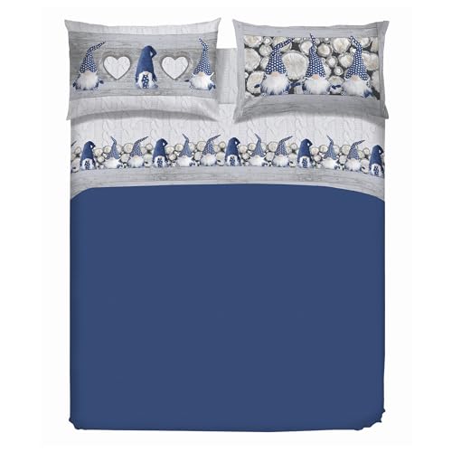 PENSIERI DELICATI Parure Påslakan Singel Flanell 100% Bomull, Väska 155X200 Cm Och Örngott 52X82CM, Tillverkad i Italien, 40° Tvättbart Påslakan I Maskin, Mönstrad Blå Gnom