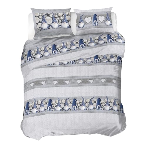 PENSIERI DELICATI Parure Påslakan Dubbel Flanell 100% Bomull, Påse 250X200 CM och örngott 52X82 CM, Tillverkad i Italien, 40° Maskintvättbart Påslakan Kanada-Mönstrad Grå