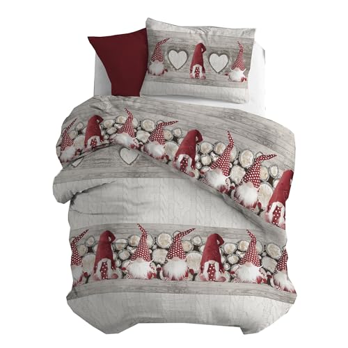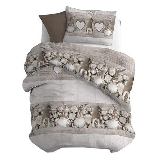 PENSIERI DELICATI Parure Påslakan Singel Flanell 100% Bomull, Väska 155X200 Cm Och Örngott 52X82CM, Tillverkad i Italien, 40° Tvättbart Påslakan I Maskin, Beige Gnom Mönster