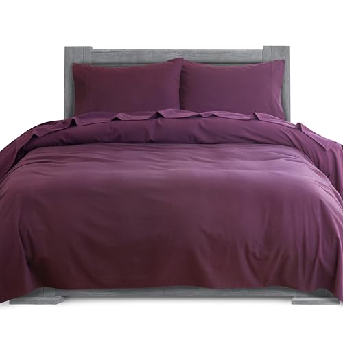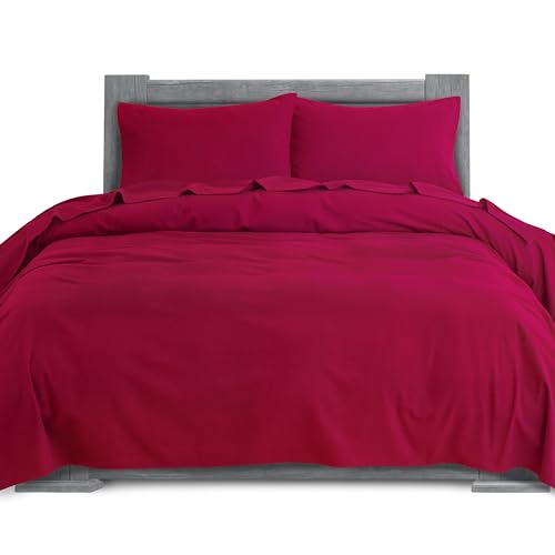 Elegant komfort mjukt 4-delat lakan i 100% turkisk bomull – premiumkvalitet, djupt fickanpassat lakan, ultramjukt, mysigt varmt och anti-piller flanell lakan – fullt, vinröd