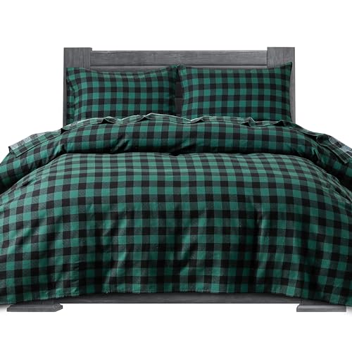Elegant komfort mjukt 4-delat lakan i 100% turkisk bomull – premiumkvalitet, djupt fickanpassat lakan, ultramjukt, mysigt varmt och anti-piller flanell lakan – helt, buffelrutigt grönt