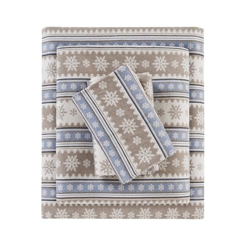 WOOLRICH bomullslakanset stugberlocker tryck, 100% bomull flanell lakan varm och luddig sängkläder set Cal King Size lakan, anpassad ficka passar upp till 35 cm madrass, Cal King Blue snöflinga, 4