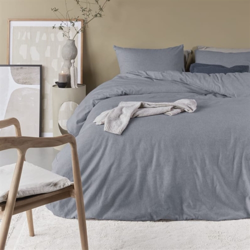 Sängkläder i flanell 140x200 cm - Mjukt enfärgat påslakan - Blue Melange - 100% bomullsflanell - By Night sängkläder
