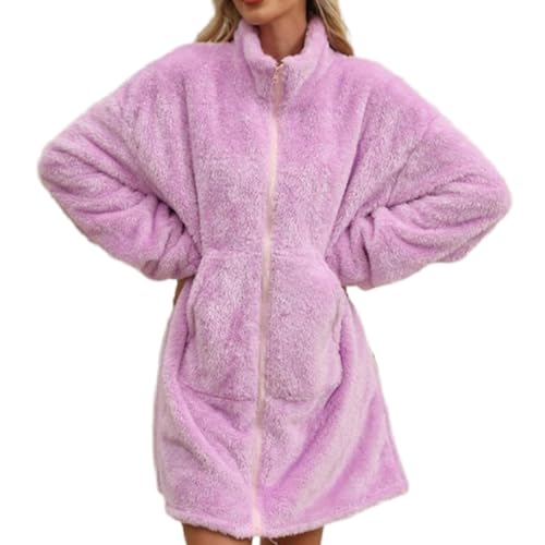 Fleecedragkedja, överdimensionerad fleecejacka – vinter flanelljacka med dragkedja och sweatshirt i stor storlek | fritidskläder för damer, varma rockar, tröjor med fickor för att titta på TV, läsa,