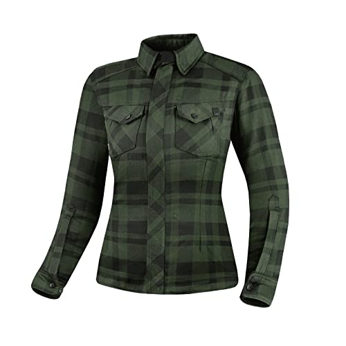 SHIMA Renegade Dam 2 motorcykelskjorta för kvinnor pansad rutig cyklist flanelljacka med Kevlar av Dupont Layer, CE rygg, axel, armbågsskydd, blixtlåsstängning (grön, XL)