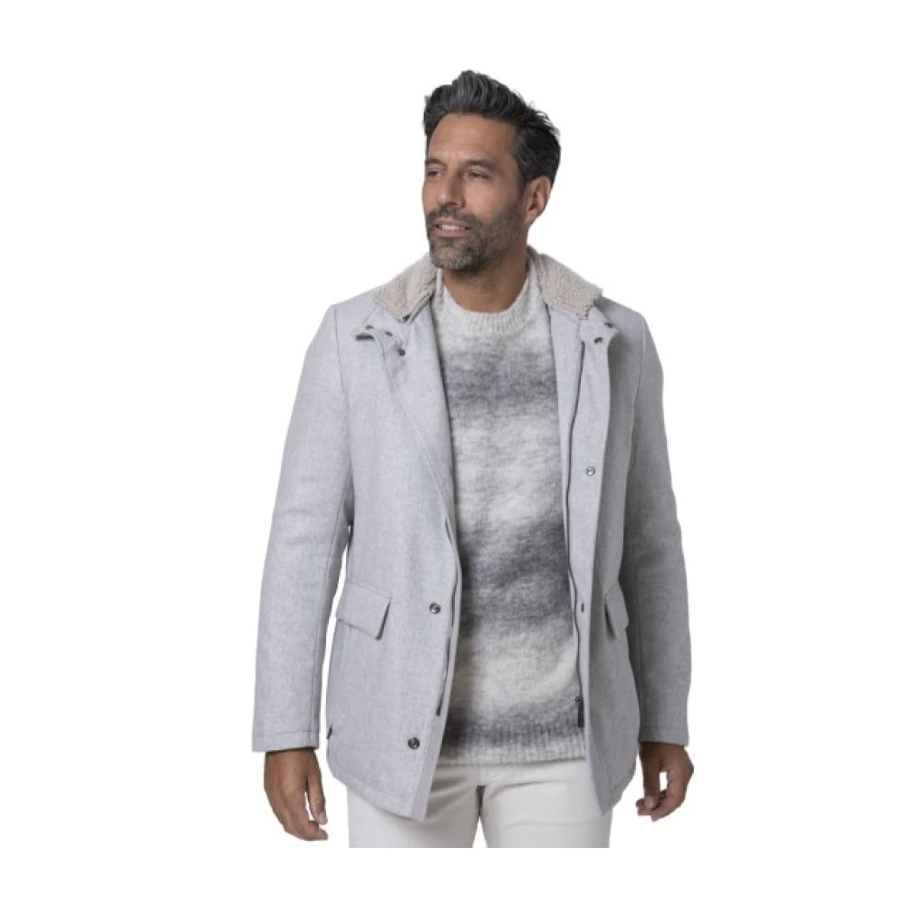 Hugo, Stickade Tröjor , Herr, S, Melange Flanelljacka med Blousonkrage
