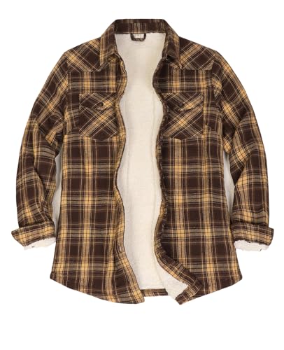 ZENTHACE Sherpa fleecefodrad flanelljacka button-down rutig flanellskjorta jacka (alla sherpa-foder), Mocha Magic, L
