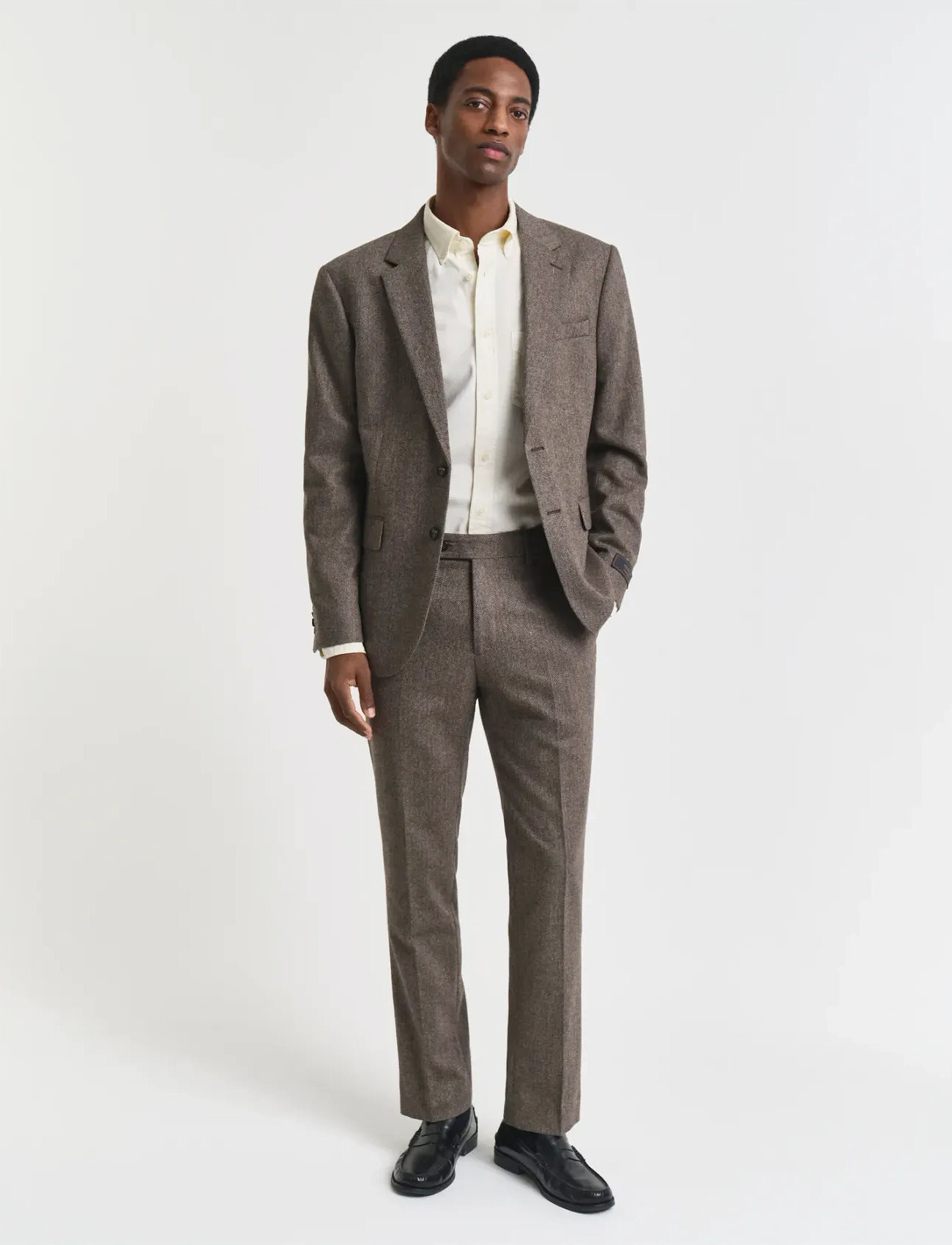 GANT Flannel Herringbone Suit Pants - Brown - 56