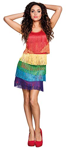 Boland 87111 – Klänning Flapper Rainbow för kvinnor, storlek M, fransklänning, regnbågsfärger, kostym, karneval, JGA