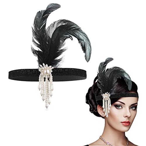 BABEYOND 1920-talet pannband fjäder kvinnor 20-talet stil flapper showgirl Charleston hårband Great Gatsby damer karneval kostym tillbehör (1 svart guld)