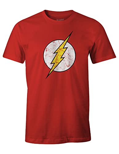 DC Comics The Flash nödställd logo dam pojkvän passform t-shirt | officiella varor | S-XXL, lös säckig överdimensionerad rund hals grafisk topp, födelsedagspresent idé för damer, Röd, XL