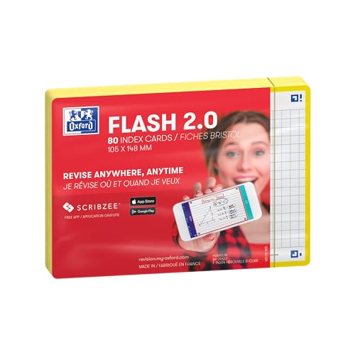 Oxford Flash 2,0 flashkort A6 105 x 148 mm, rutig, 5 mm, gul, 80 stycken