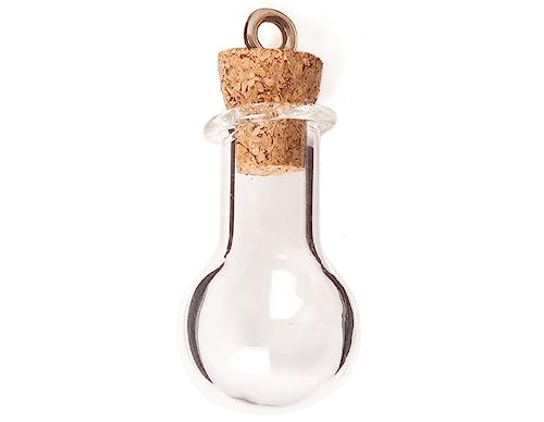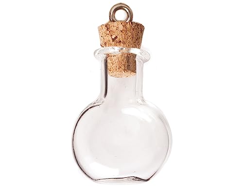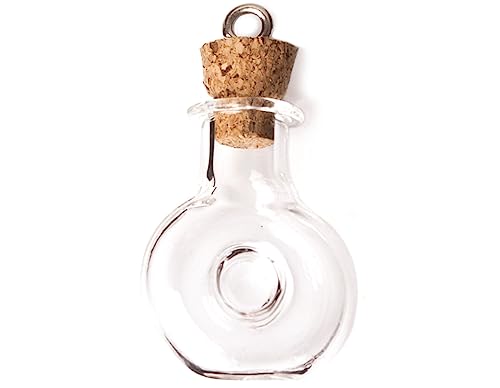 INNSPIRO Hänge glas rund flaska med transparent lättnad med kork stängning 19x29mm., 19x29mm., Glas, Ingen ädelsten
