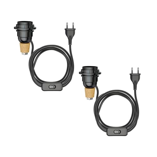 ledscom.de 2 st. bordslampa kork lampa FLAKO med strömbrytare och textilkabel, svart, 1x E27 max. 60W, utan flaska, utan glödlampa