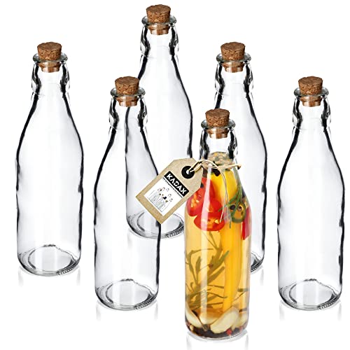 KADAX Universell flaska med kork, set om 6, genomskinliga glasflaskor med korkpluggar, oljekaraff, glasbehållare, oljeflaska, vinägerflaska för fyllning (225 ml, 6 stycken)
