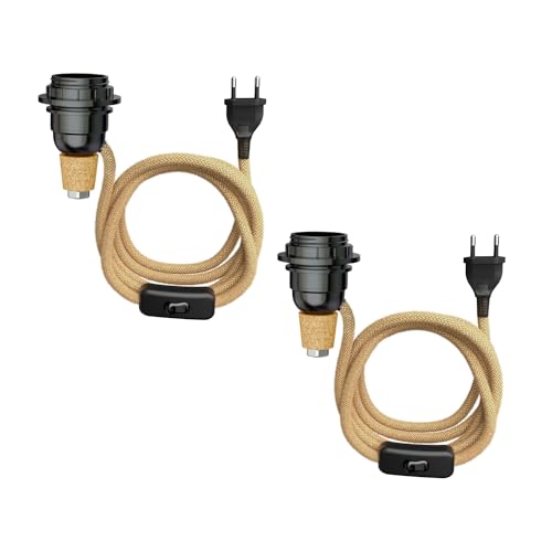 ledscom.de 2 st. bordslampa kork lampa FLAKO med strömbrytare och textilkabel, hampa, natur-beige, 1x E27 max. 60W, utan flaska, utan glödlampa