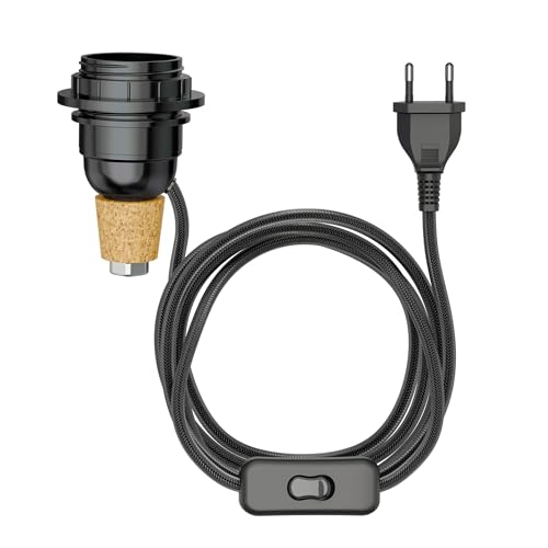 ledscom.de Bordslampa Kork lampa FLAKO med strömbrytare och textilkabel, svart, 1x E27 max. 60W, utan flaska, utan glödlampa