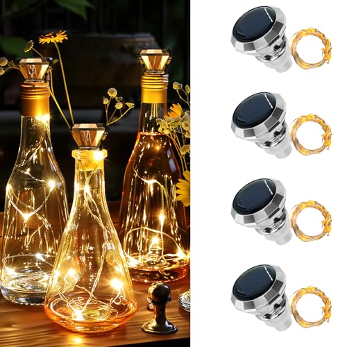Apritsce Flasklampa för sol, 4 stycken LED-korkar flaskljus, 2 m 20 lysdioder ljuskedja kork utomhus sol, ljuskedja flaska för gör-det-själv-dekoration, fest, trädgård, bröllopsdekoration
