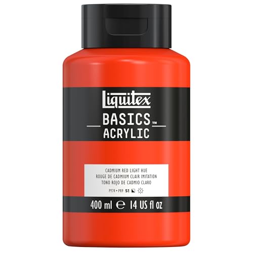 Liquitex 8870318 basics – akrylfärg, monopigmenterade konstnärspigmenteringar, ljusäkta, medelviskositet, arkivkvalitet, sidenglänsande finish, 400 ml flaska – kadmiumröd ljus nyans