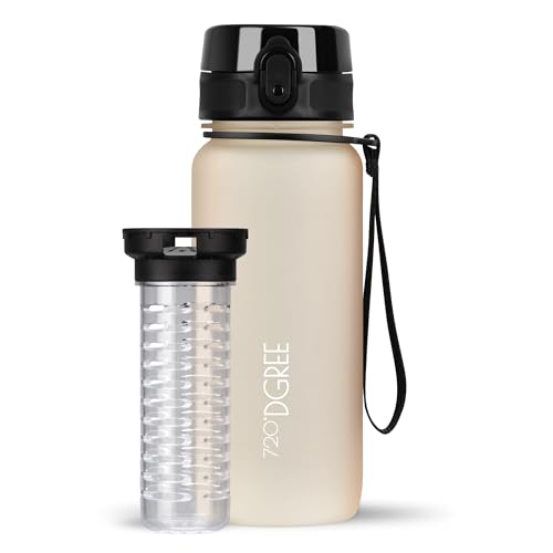 720°DGREE Vattenflaska "uberBottle" + fruktinfusion - 350 ml, 500 ml, 650 ml, 1 l, 1,5 l - BPA-fri Tritan, läckagesäker, återanvändbar - sport dricksflaska för barn, gym, fitness, utomhus, cykling, skola 05 Ljus persika | Softtouch 650ml