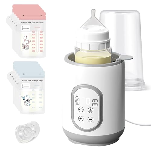 Bizcasa Flaskvärmare, baby, BPA-fri elektrisk flaskvärmare, flaskvärmare för flaskor och barnmat med intelligent temperaturkontroll, med napp och mjölkförvaringspåse (vit)