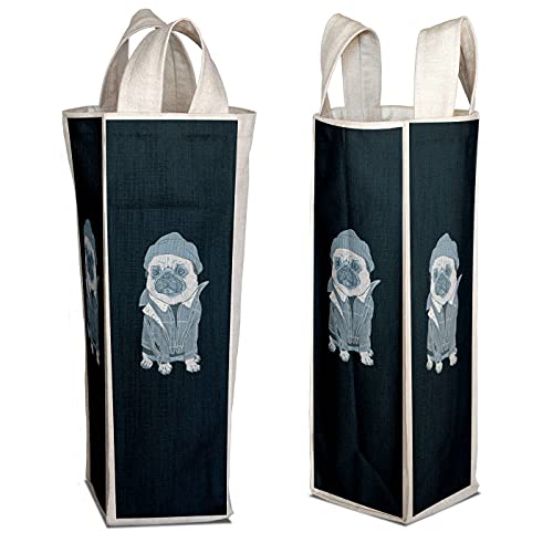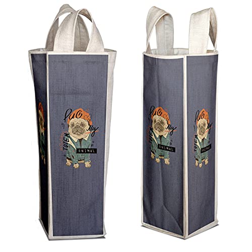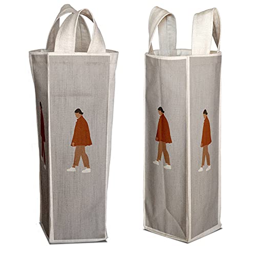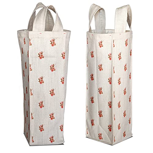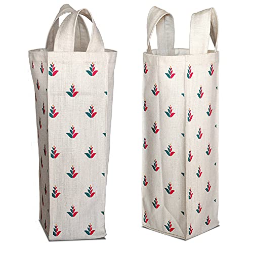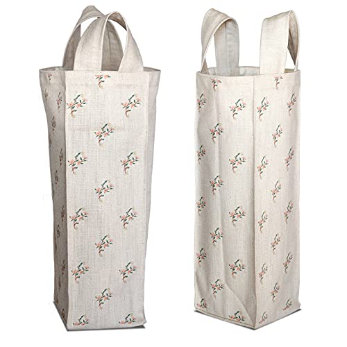 Bonamaison Digitalt tryckt bomullsduk vinväska, flaskväska, vinflasköverdrag, vinhållare väska, storlek: 16,5 x 31,5 x 7,5 cm