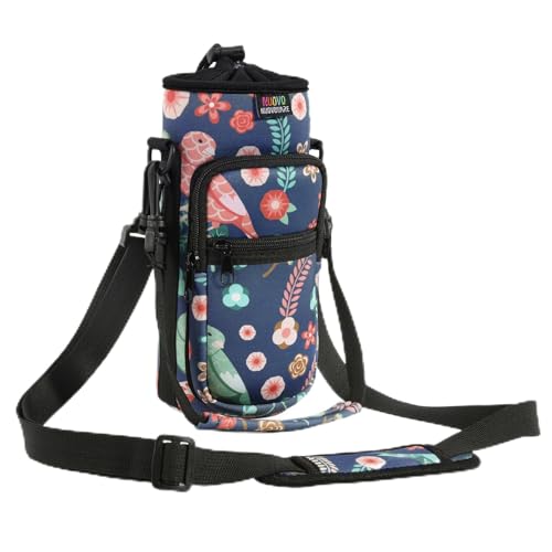 Nuovoware Neopren flaskväska, 25oz/710 ml flaskhållare med justerbar axelrem/rem, tote väska med 2 fickor, perfekt tillbehör för resor vandring camping - svart