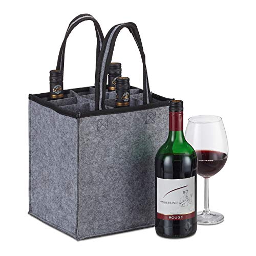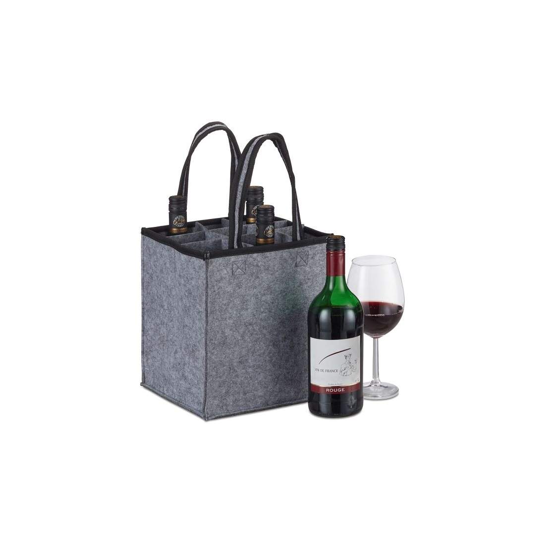 achilles Flaskväska med 6 fack, Även för 1,5 liters flaskor, flaskväska gjord av filt, 100% återvunnet, 27cm x 18cm x 27cm