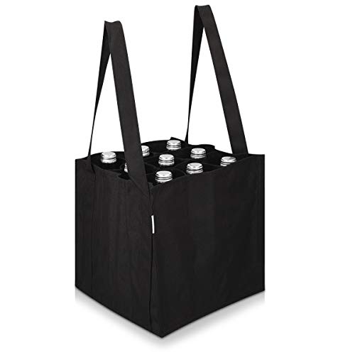 Achilles flaskväska, flaskväska för 9 x 1,5 liter flaskor, bottlebag, bärväska med skiljeväggar för flaskor, shoppingväska med 9 fack, 27 cm x 27 cm (svart)