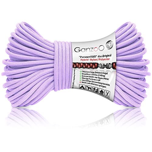 Ganzoo Paracord 550 lina 30m, 4mm typ 3 pastellavender, hybrid nylon polyester, ca 250kg brottlast, 32-flätad mantel och 7 innertrådar, för armband hundkoppel halsband samt outdoor camping