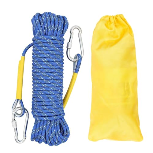 Gangying Klätterlina 10 mm utomhusrep 10 m statiskt klätterrep utomhusrep brandräddningsfälla lina flätad nylonrep med 2 stålkrokar för vandring utomhus bergsklättring sport camping