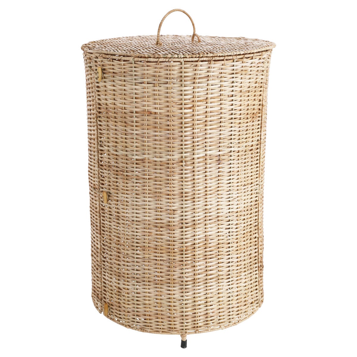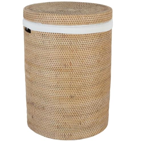 Casa Moro Rotting tvättkorg CLEO XL 40 x höjd 60 naturbeige brun rund med lock och avtagbar innerpåse | Boho Chic tvättkorg med handtag förvaringskorg rustik flätad LOM20033