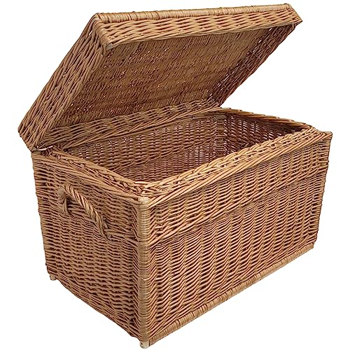 weeco Flätad korg med vikbart lock, 70 cm, handgjord leksakskorg, naturlig färg, tvättkorg, korg med lock