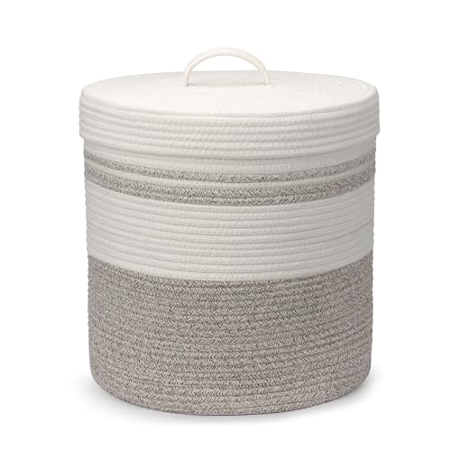 Rieeyrslza Tvättkorg för Filtar 32L Flätad Tvättsamlare Bomull Rope Korg Vikbar Mångsidig Förvaringskorg med Handtag Lämplig för Vardagsrum Och Sovrum(Ljusgrå)