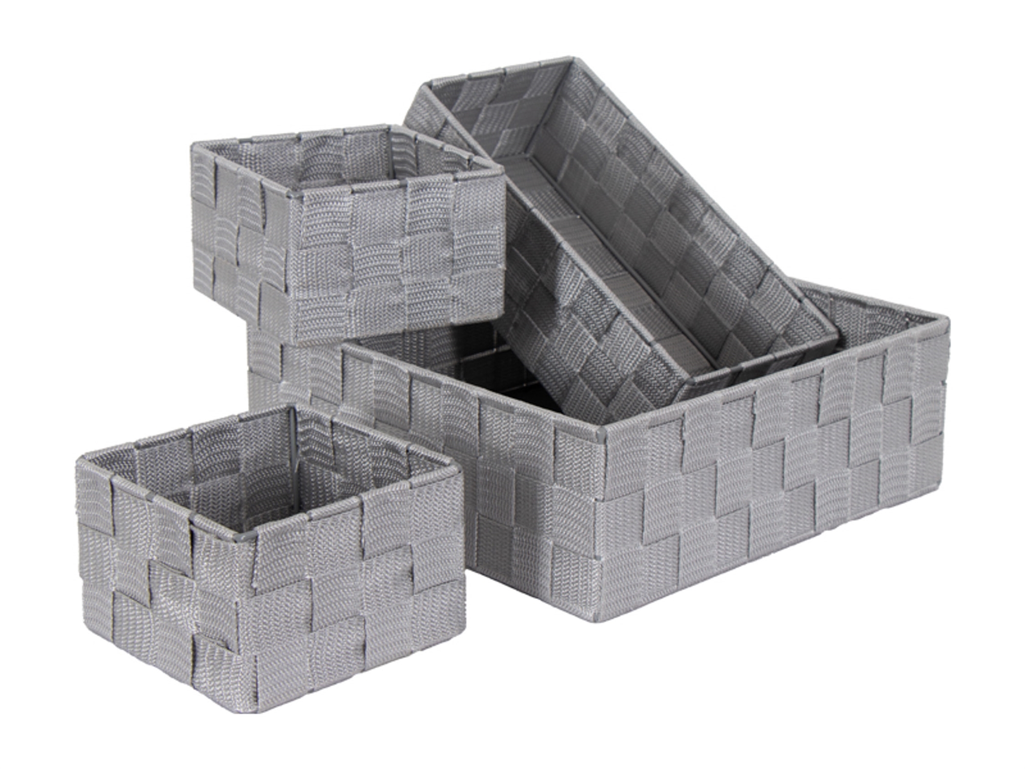 Förvaringskorgar i flätat material - 4 praktiska korgar i ett set - Grå flätade korgar för hemmet