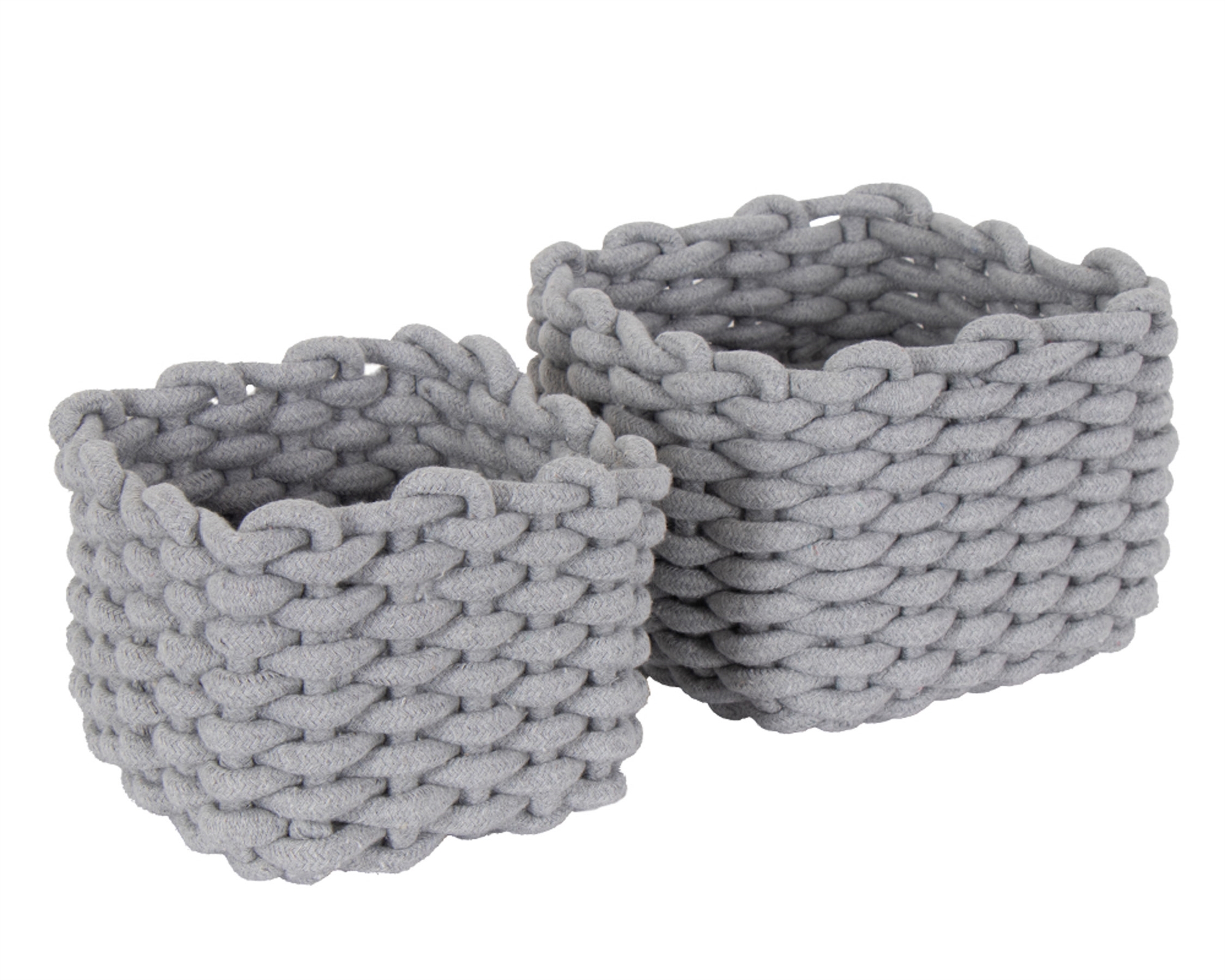 Flätade korgar av bomullsrep - 2 st. - Grå dekorativa förvaringskorgar för hemmet